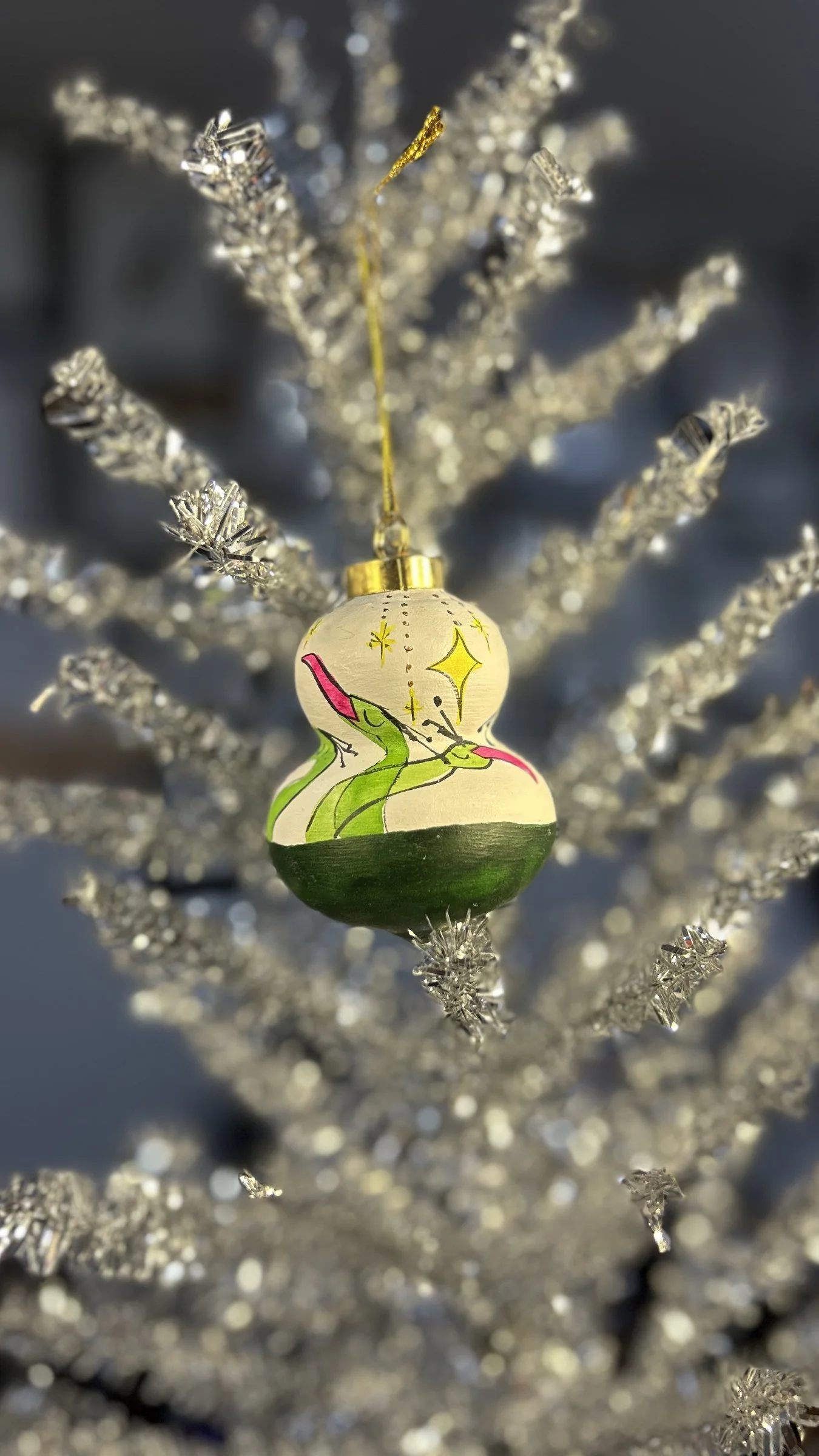 Hand painted, ceramic ornaments featuring incredible quirky bird darlings.